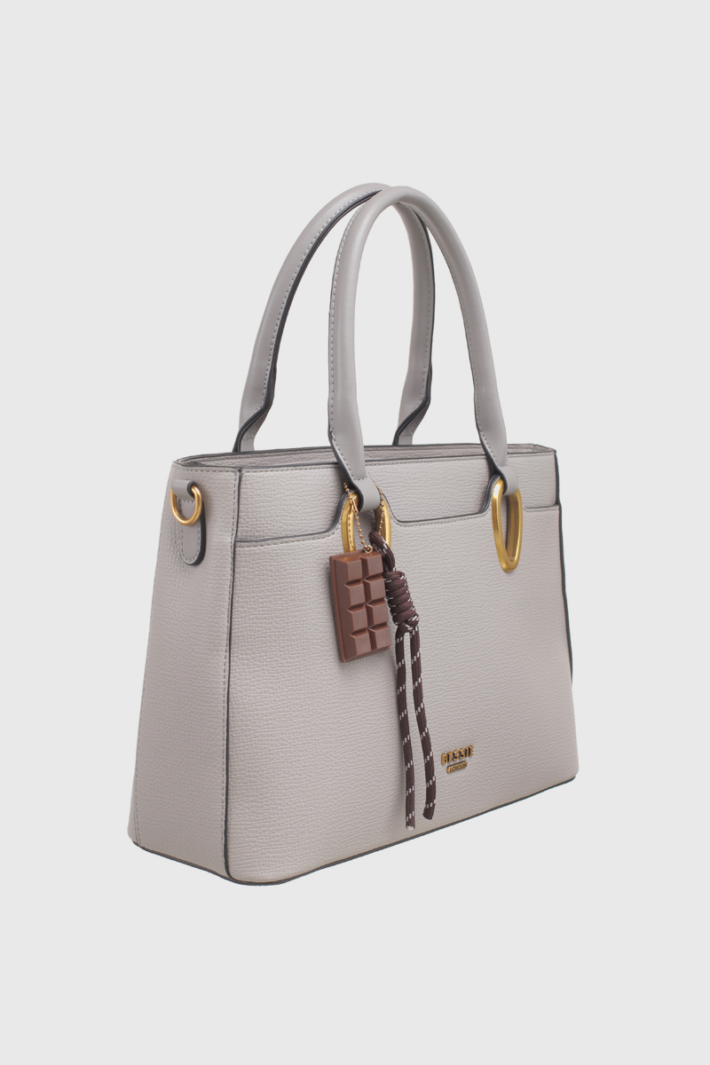 Features: Tote Bag | Charm | Zip Closure | Fully Lined Interior | Detachable Strap | Back Zip Pocket | Double Handles