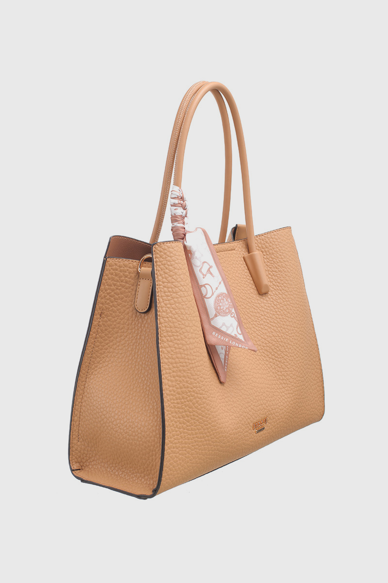 Features: Tote Bag | Scarf | Zip Closure | Fully Lined Interior | Detachable Strap | Double Handles