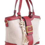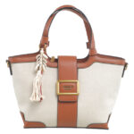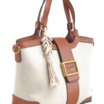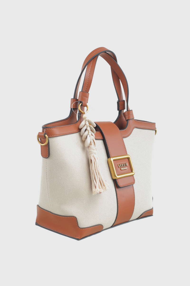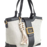 Features: Tote Bag | Canvas | Buckle | Charm | Fully Lined Interior | Detachable Strap | Zip Closure | Double Handles