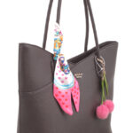 Features: Tote Bag | Shoulder Bag | Scarf | Charm | Fully Lined Interior | Double Handle | Zip Closure