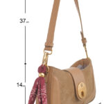 Features: Crossbody Bag | Scarf | Fully Lined Interior | Zip Closure | Detachable Strap | Twist Lock | Flap Over