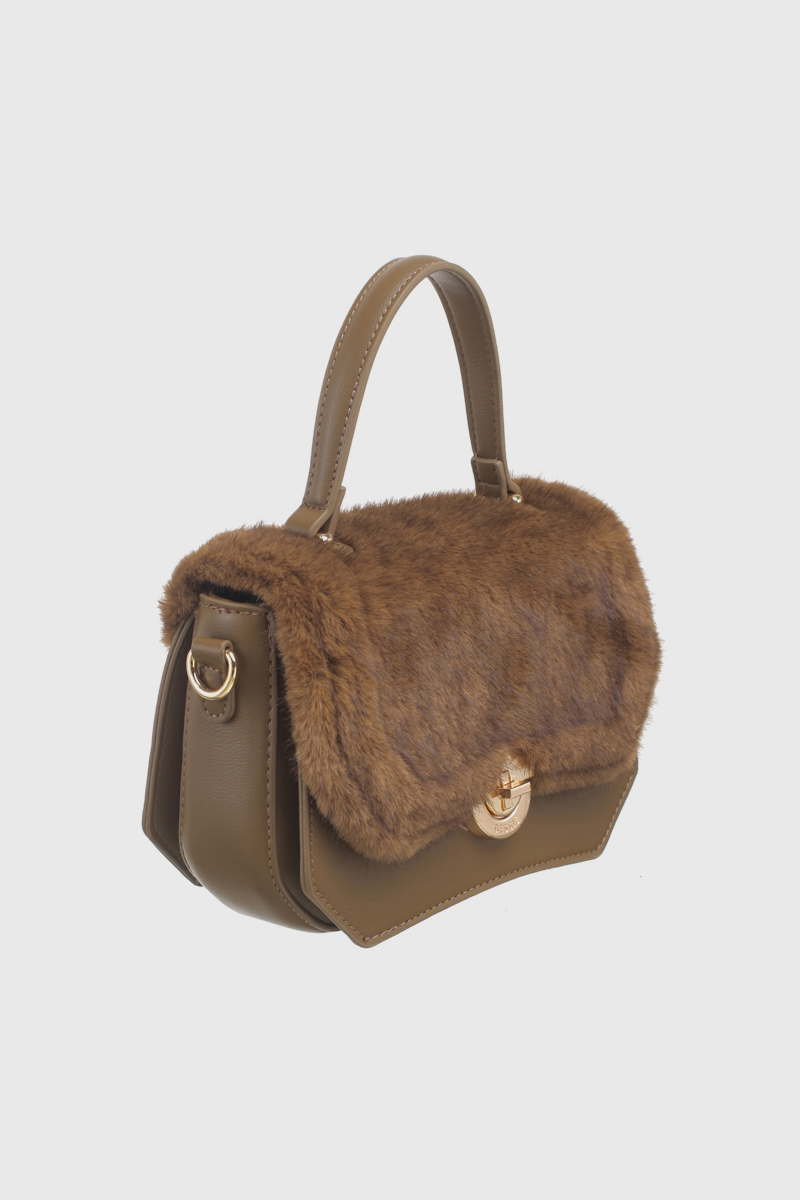 Features: Satchel | Faux Fur | Charm | Turn-Lock | Fully Lined Interior | Detachable Strap | Top Handle