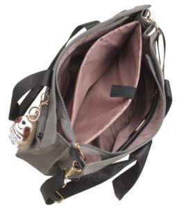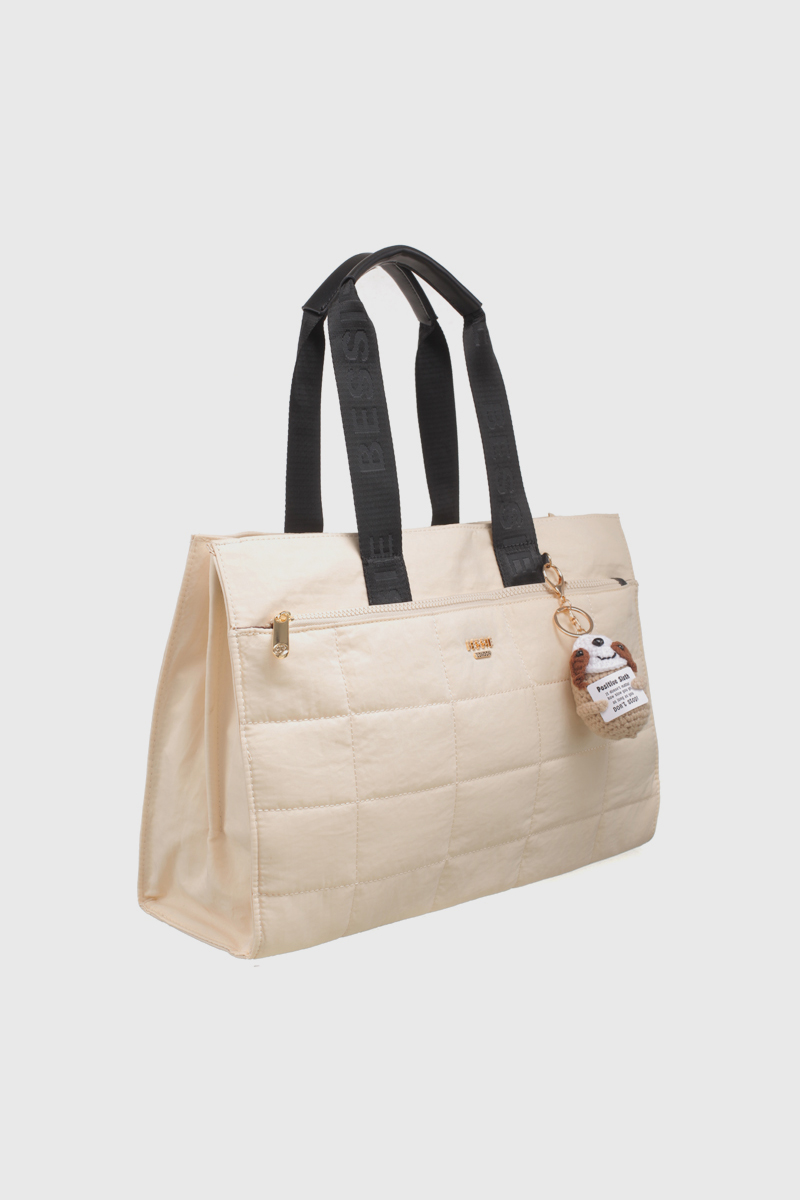 Features: Tote Bag | Charm | Zip Closure | Back Zip Pocket | Fully Lined Interior | Detachable Strap | Double Handles