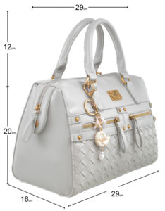 Features: Bowler Bag | Tote Bag | Weave | Charm | Fully Lined Interior | Zip Closure | Front Zip Pockets | Detachable Strap | Double Handles