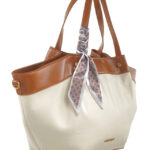 Features: Tote Bag | Faux Leather | Scarf | Fully Lined Interior | Detachable Strap | Zip Closure | Double Handles