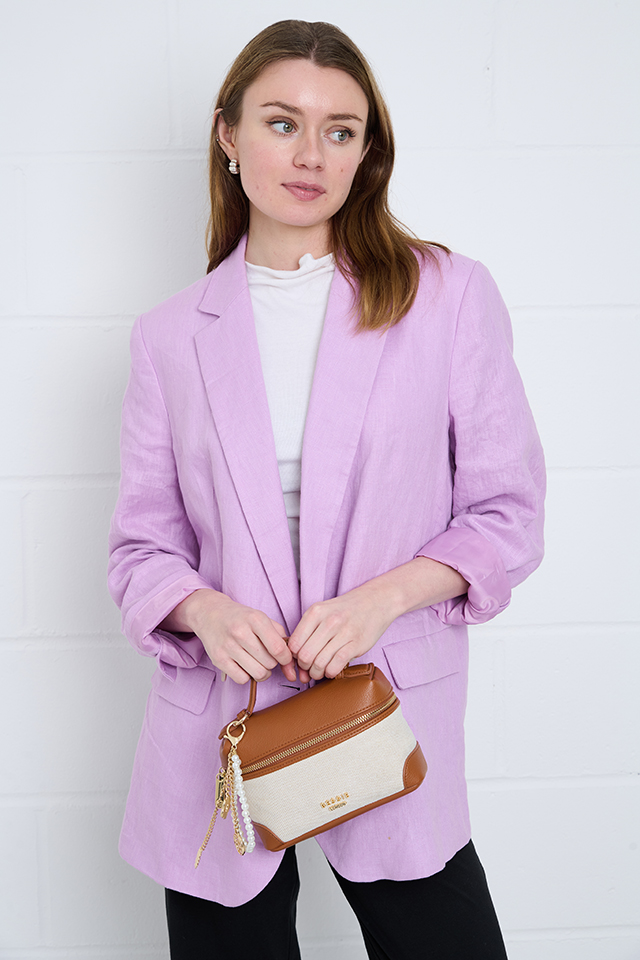 Features: Crossbody Bag | Weave | Charm | Fully Lined Interior | Zip Closure | Detachable Strap | Top Handle