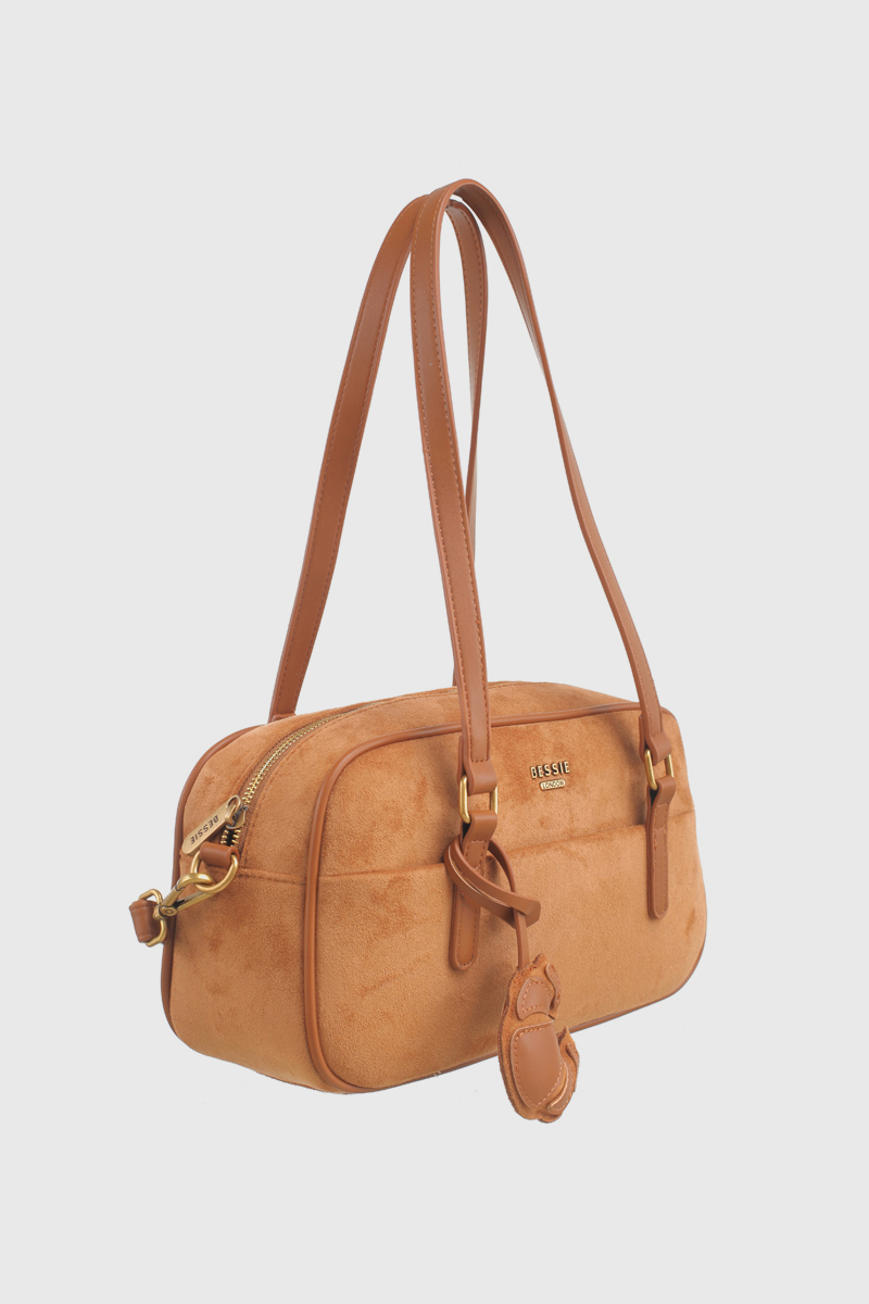 Features: Shoulder Bag | Faux Suede | Charm | Fully Lined Interior | Detachable Strap | Zip Closure