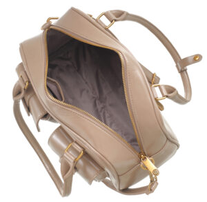 Features: Bowler Bag | Tote Bag | Fully Lined Interior | Zip Closure | Front Pockets | Detachable Strap | Double Handles
