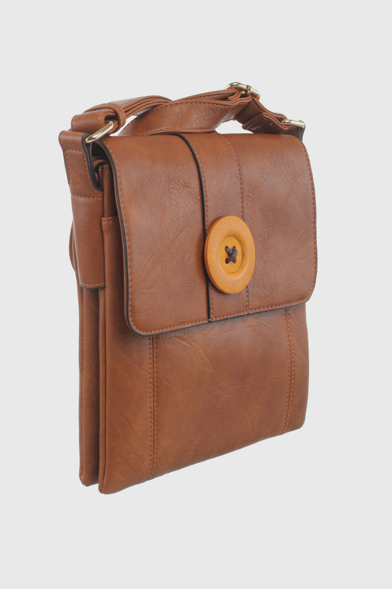 Features: Two Zip Pockets | One Open Pocket | Front Button Detail | Interior Pockets