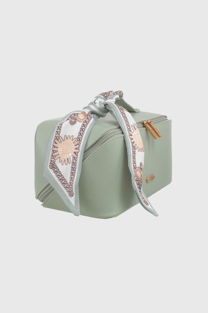 Features: Box Bag | Scarf | Fully Lined Interior | Zip Closure | Top Handle