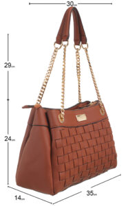 Features: Shoulder Bag | Weave | Chain | Zip Closure | Fully Lined Interior | Detachable Strap