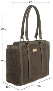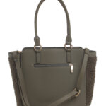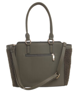 Features: Tote Bag | Faux Fleece | Fully Lined Interior | Zip Closure | Detachable Strap | Back Zip Pocket | Double Handles