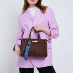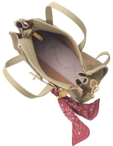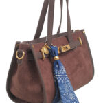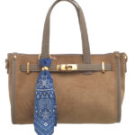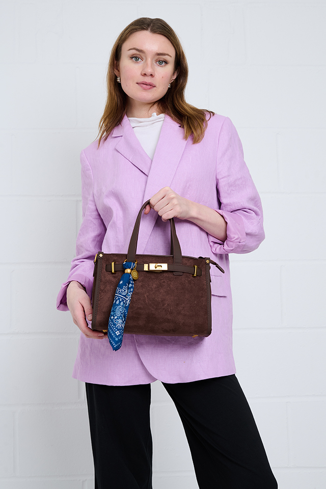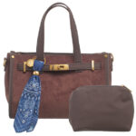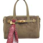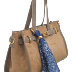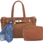 Features: Tote Bag | Faux-Suede | Scarf | Pouch | Fully Lined Interior | Detachable Strap | Zip Closure | Double Handles
