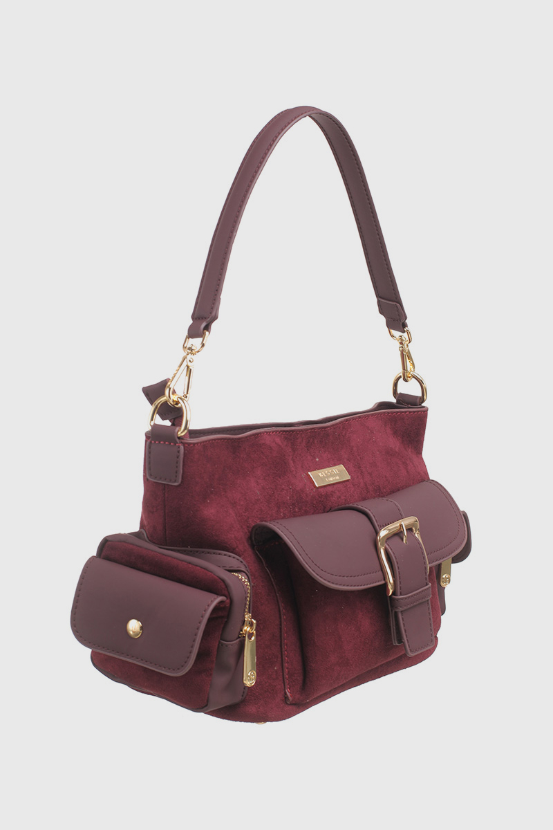 Features: Shoulder Bag | Faux Suede | Buckle | Fully Lined Interior | Zip Closure | Back Zip Pocket | Detachable Strap