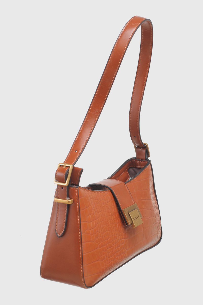 Features: Baguette Bag | Crossbody Bag | Croc | Push Lock | Fully Lined Interior | Detachable Strap