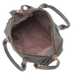 Features: Barrel Bag| Tote Bag | Buckle | Fully Lined Interior | Detachable Strap | Zip Closure | Back Zip Pocket | Double Handles