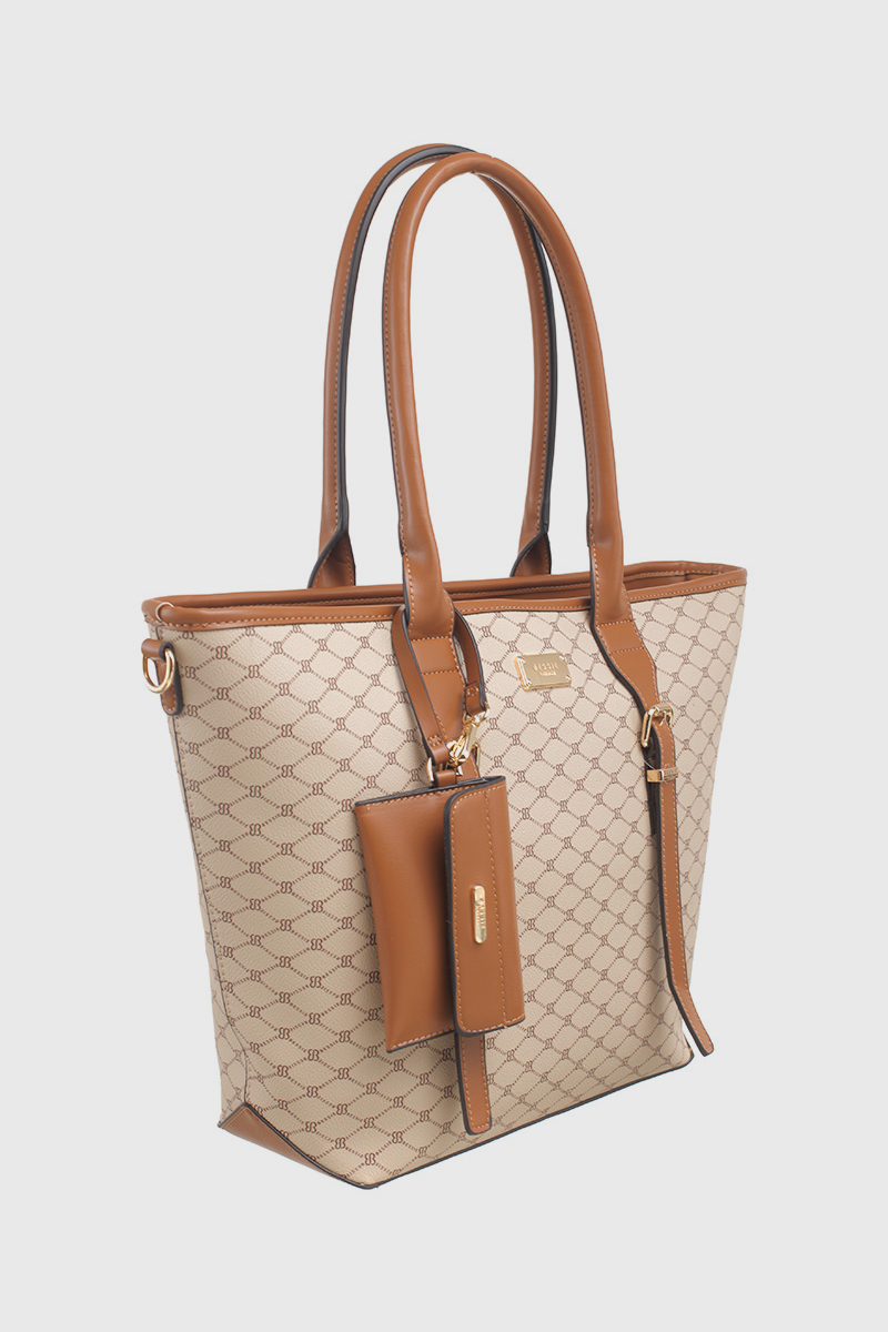 Features: Tote Bag | Monogram | Fully Lined Interior | Zip Closure | Black Zip Pocket | Double Handles