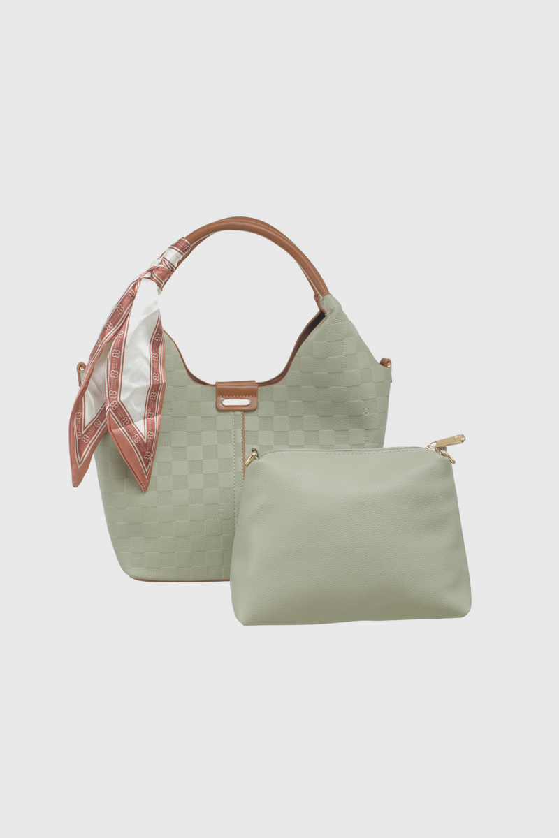 Features: Shoulder Bag | Checkerboard | Scarf | Bag-in-Bag | Pouch | Fully Lined Interior | Tap Closure | Detachable Strap | Double Handles