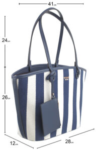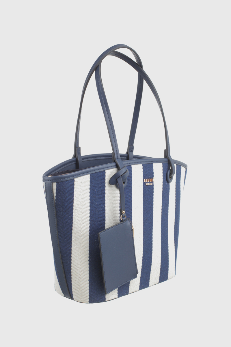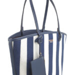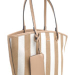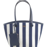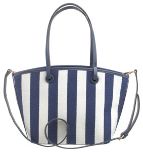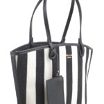 Features: Shopper Bag | Tote Bag | Shoulder Bag | Canvas | Stripe | Charm | Fully Lined Interior | Detachable Strap | Zip Closure | Shoulder Straps