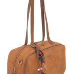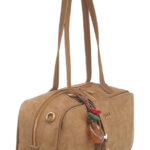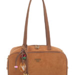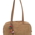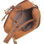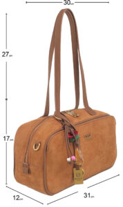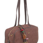 Features: Bowling Bag | Shoulder Bag | Faux Suede | Charm | Fully Lined Interior | Zip Closure | Detachable Strap | Shoulder Straps
