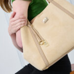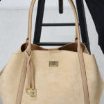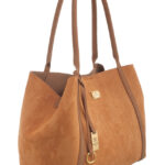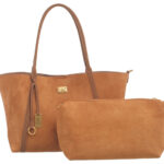 Features: Tote Bag | Shoulder Bag | Faux-Suede | Charm | Pouch | Fully Lined Interior | Snap Closure | Zip Closure | Double Handles