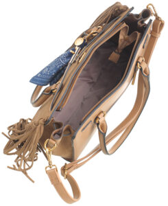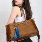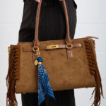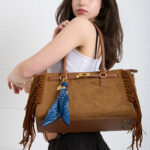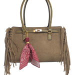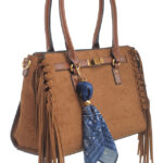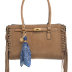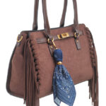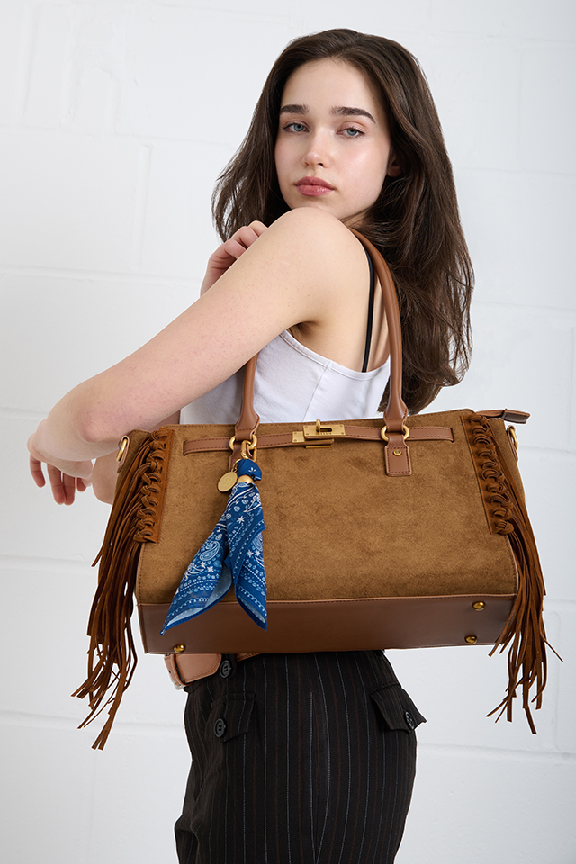 Features: Shoulder Bag | Faux-Suede | Fringe | Buckle | Scarf | Fully Lined Interior | Zip Closure | Shoulder Straps
