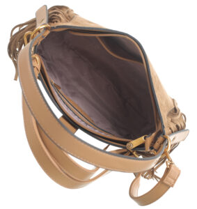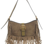 Features: Shoulder Bag | Faux Suede | Buckle | Fringe | Fully Lined Interior | Detachable Strap | Adjustable Strap | Back Zip Pocket | Zip Closure