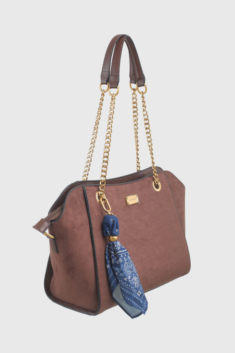 Features: Shoulder Bag | Faux Suede | Scarf | Fully Lined Interior | Detachable Strap | Back Zip Pocket | Zip Closure | Shoulder Straps