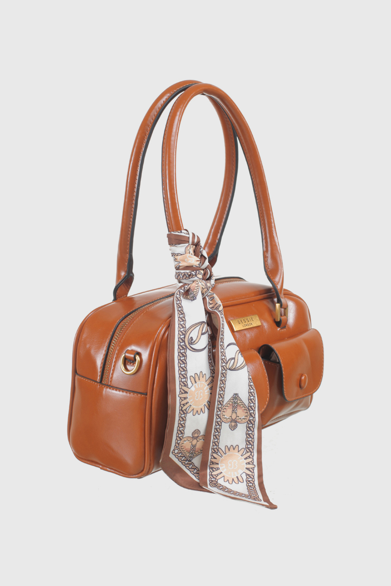 Features: Barrel Bag | Tote Bag | Scarf |Fully Lined Interior | Detachable Strap | Front Duo Pocket | Zip Closure | Double Handles
