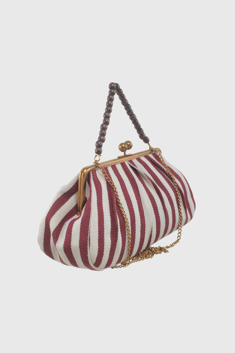 Features: Clutch Bag | Stripe | Bead | Fully Lined Interior | Detachable Chain | Kiss Lock Closure